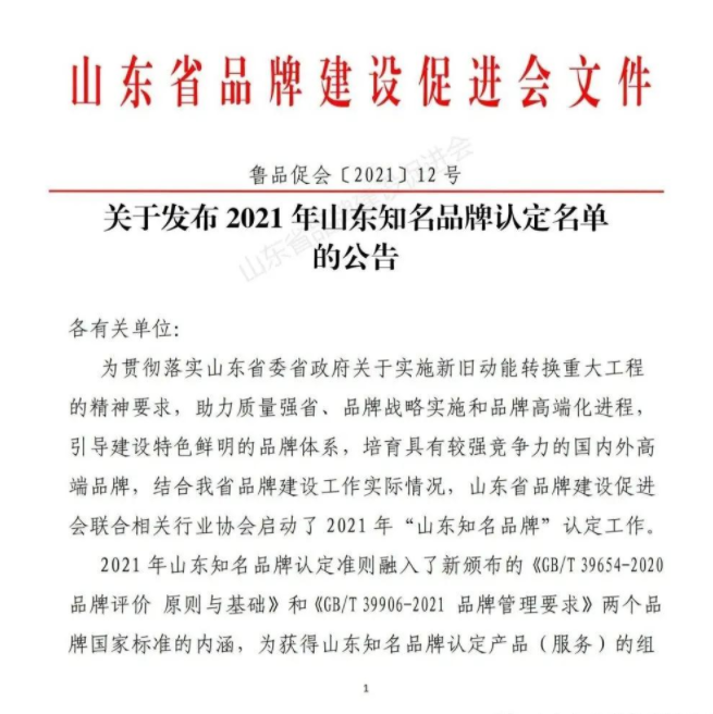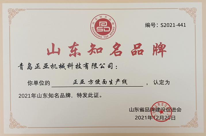 山東省品牌建設(shè)促進(jìn)會(huì)(英文簡(jiǎn)稱SDCBD),是山東省品牌綜合管理機(jī)構(gòu)。為助力我省質(zhì)量強(qiáng)省及品牌戰(zhàn)略實(shí)施和品牌高端化進(jìn)程,引導(dǎo)建設(shè)特色鮮明的品牌體系,培養(yǎng)具有較強(qiáng)競(jìng)爭(zhēng)力的高端品牌,結(jié)合我省品牌建設(shè)實(shí)際情況,山東省品牌建設(shè)促進(jìn)會(huì)開(kāi)啟2021年度“山東知名品牌”認(rèn)定工作。此次品牌認(rèn)定依據(jù)融入了新頒布的《GB/T 39654-2020品牌評(píng)價(jià)原則與基礎(chǔ) 》和《GB/T 39906-2021品牌管理要求》兩個(gè)品牌標(biāo)準(zhǔn)的內(nèi)涵,為獲得山東省知名品牌認(rèn)定產(chǎn)品(或服務(wù))的組織取得更高的品牌榮譽(yù)奠定了基礎(chǔ)。我公司能最終取得認(rèn)定,說(shuō)明我公司 “方便面生產(chǎn)線”獲得了山東省及行業(yè)的支持與認(rèn)可,同時(shí),積極推動(dòng)了公司自主創(chuàng)新、自動(dòng)研發(fā)的進(jìn)程。